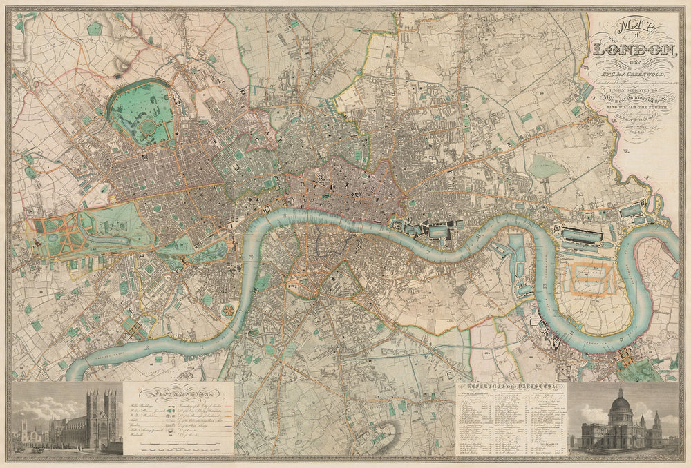 Big Old Map of London by C&J Greenwood, 1830: Handcoloured