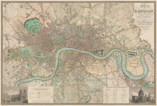 Originally printed in 6 sheets, this is probably the prettiest of all old London maps. By the 1830s many of London's famous landmarks already exist - but some, like the Royal Albert Hall and all of the museums in South Kensington wouldn't be built until Victorian times a few decades later.