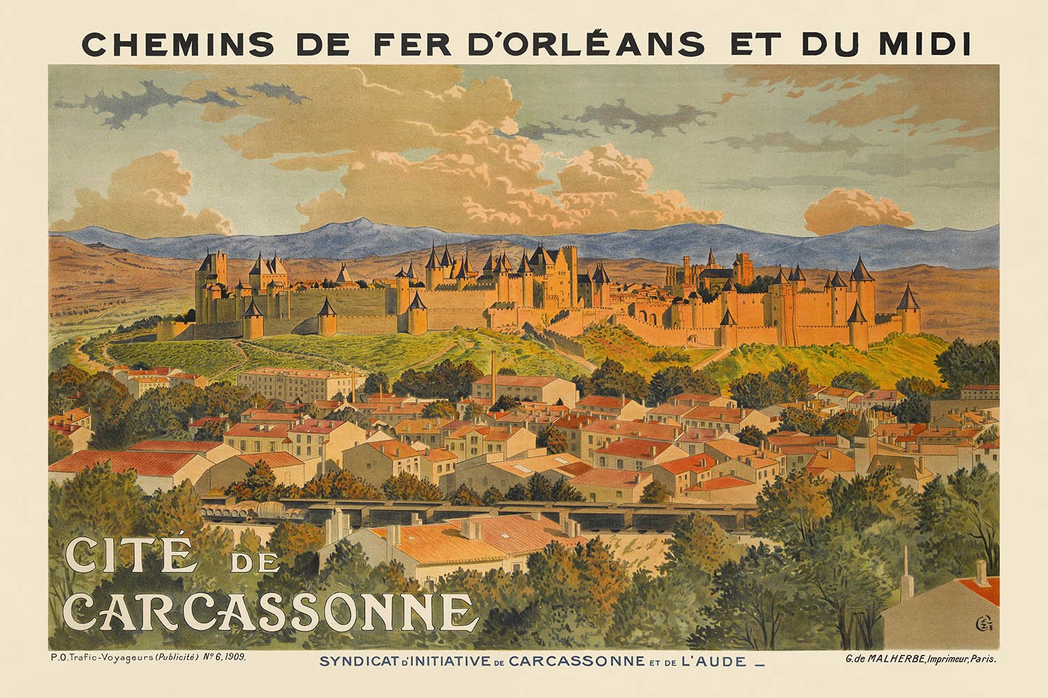 Carcassonne Travel Poster by Eugène Grasset, 1909