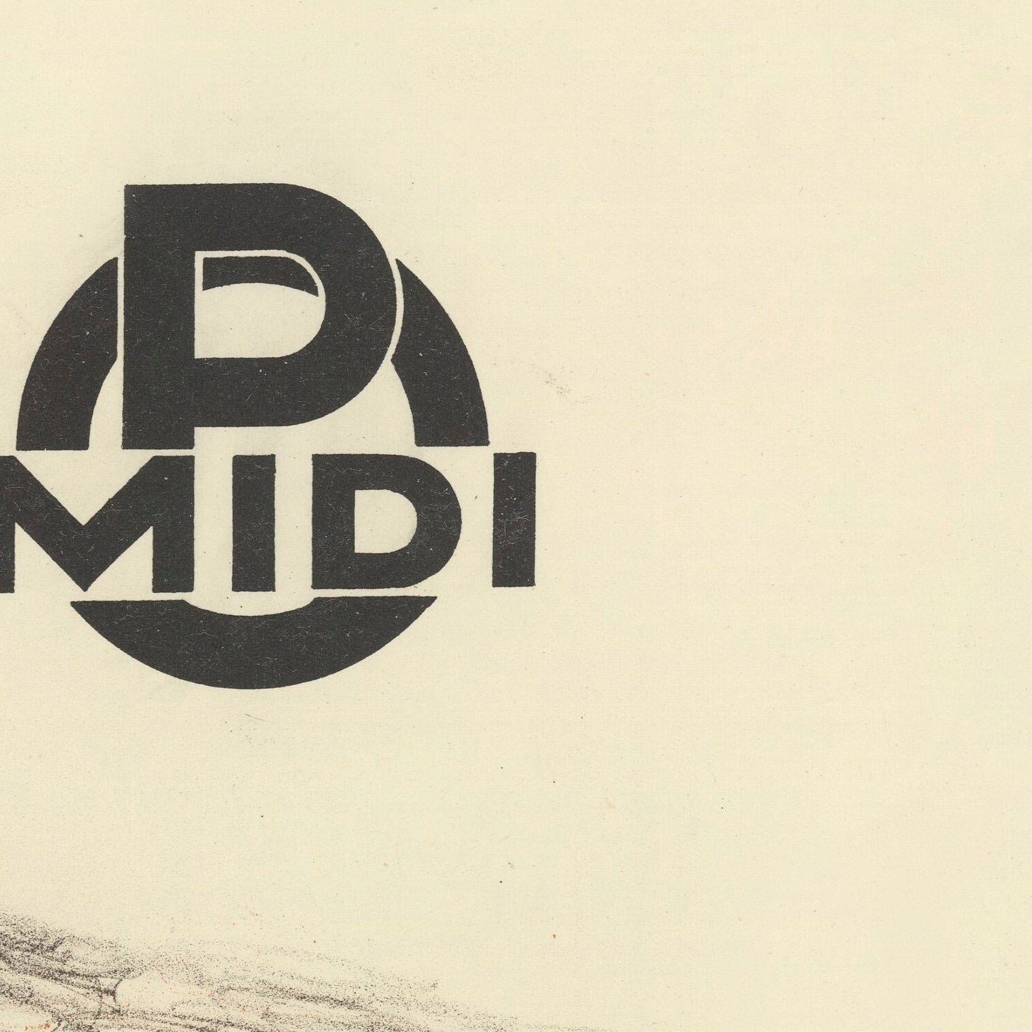 Design lovers will appreciate Robida’s refined draughtsmanship and limited palette. Sepia‑brown washes model the stonework; touches of mossy green suggest foliage; and the creamy ground recalls sun‑bleached limestone. The teal‑green letterforms at top and bottom balance the composition while signaling the Chemins de fer du Midi brand. The restrained colors and delicate cross‑hatching make this print easy to live with and effortless to pair with interiors from rustic to modern.