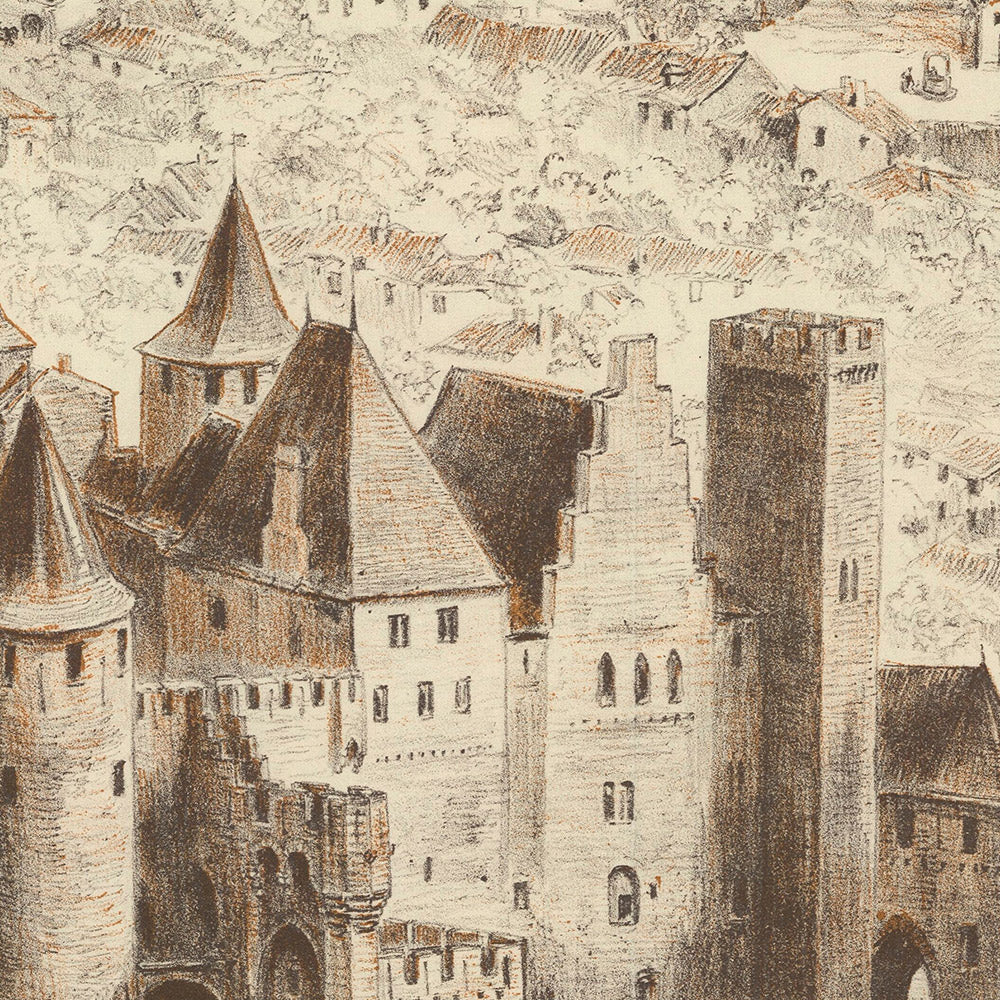 The subject itself is irresistible: La Cité de Carcassonne, with origins in antiquity and mighty defenses expanded through the 12th and 13th centuries, stands as a textbook of medieval fortification. The poster even includes a laudatory remark from the great restorer Eugène Viollet‑le‑Duc, whose 19th‑century work helped fix Carcassonne’s silhouette in the popular imagination. For travelers who have wandered its cobbles or admired it from afar, this image captures the drama of double walls, barbicans, and watchtowers massed above the Aude valley.