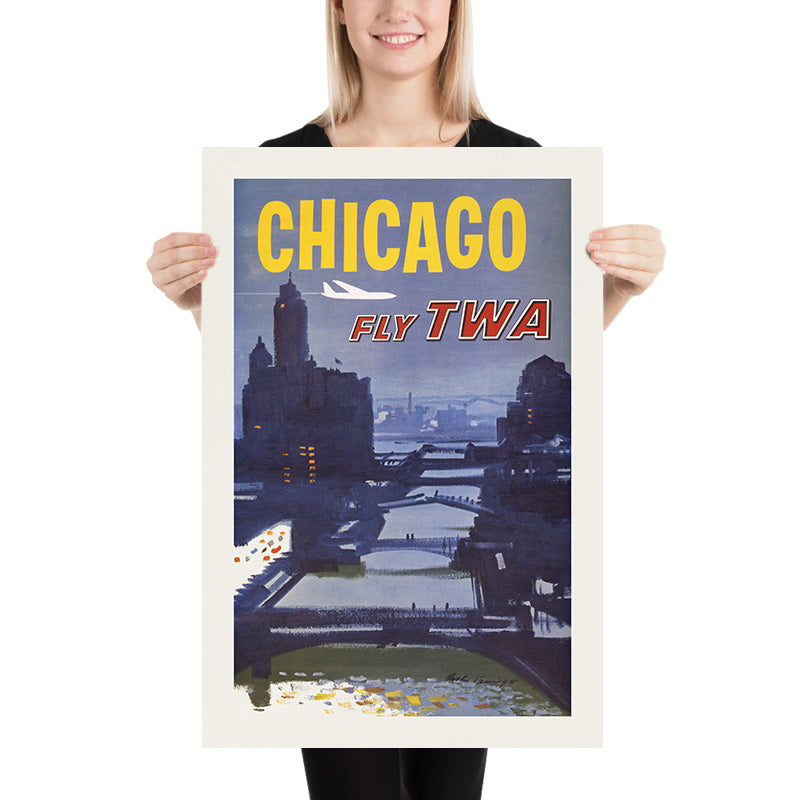 Chicago Travel Poster: Fly TWA by Austin Briggs, 1960