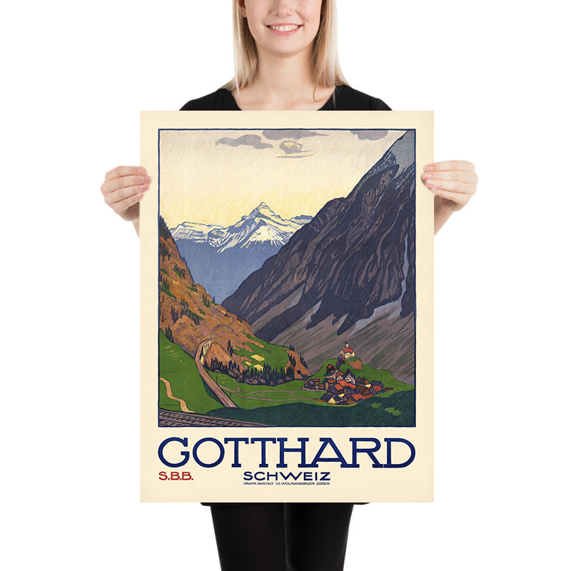 Gotthard Pass Travel Poster: Gotthard Schweiz by Emil Cardinaux, 1914