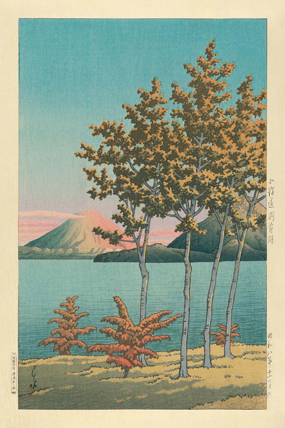 Hasui Kawase is celebrated for his dedication to the shin-hanga movement, which revitalized traditional ukiyo-e art in early 20th-century Japan. His works, known for their delicate rendering of light and shadow, offer a window into Japan's serene landscapes. "Lake and Mountain" exemplifies Kawase's talent for portraying tranquil natural beauty.