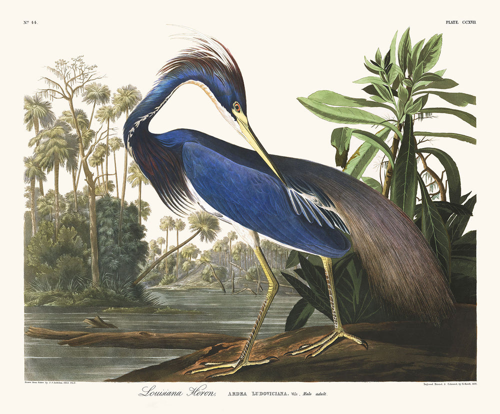 Louisiana Heron, first published in 1827, is one of the most colourful and opulently beautiful illustrations from John James Audobon's magnum opus, The Birds of America.