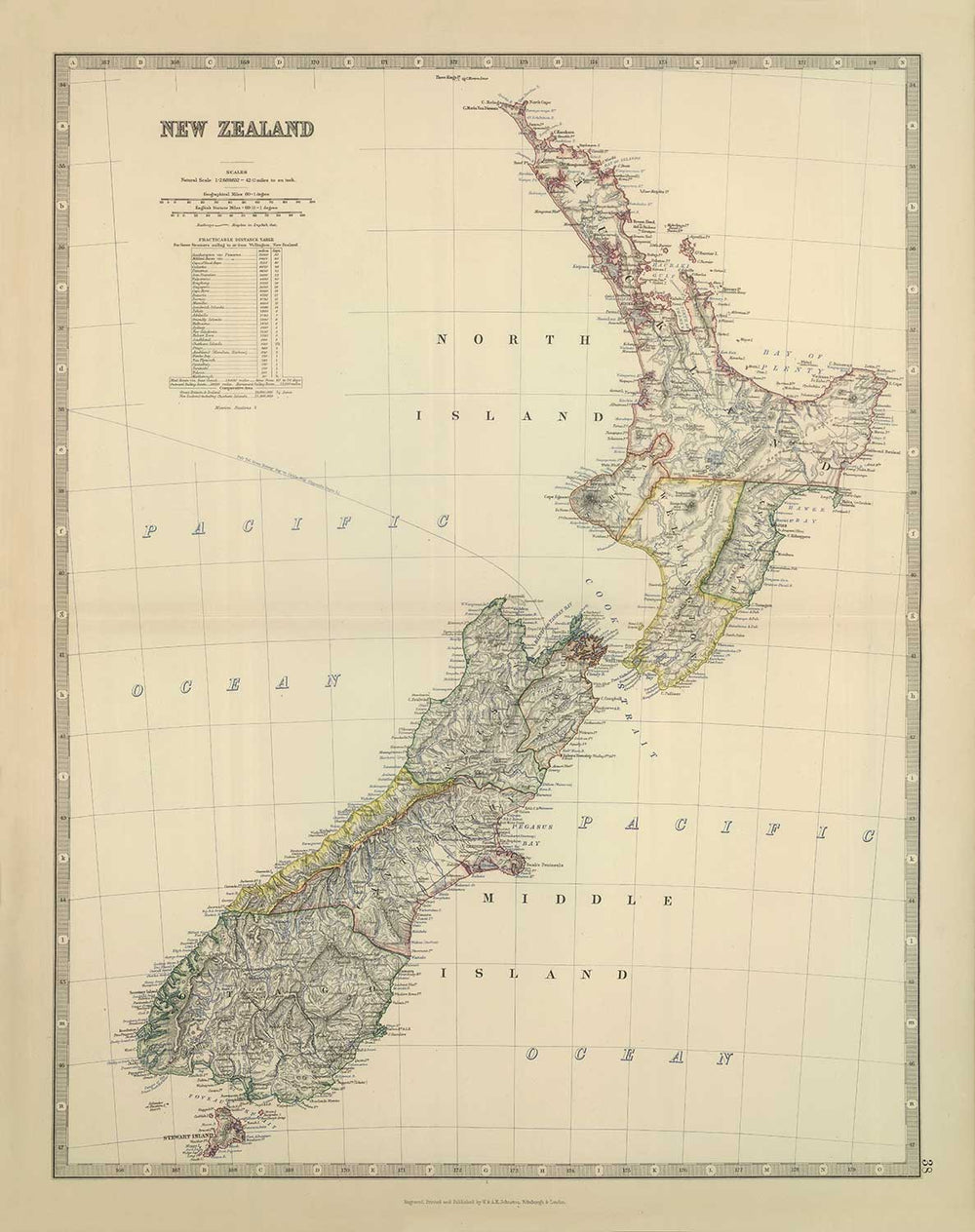 This wonderful old map of New Zealand was originally published in 1879. It was created by AK Johnston.