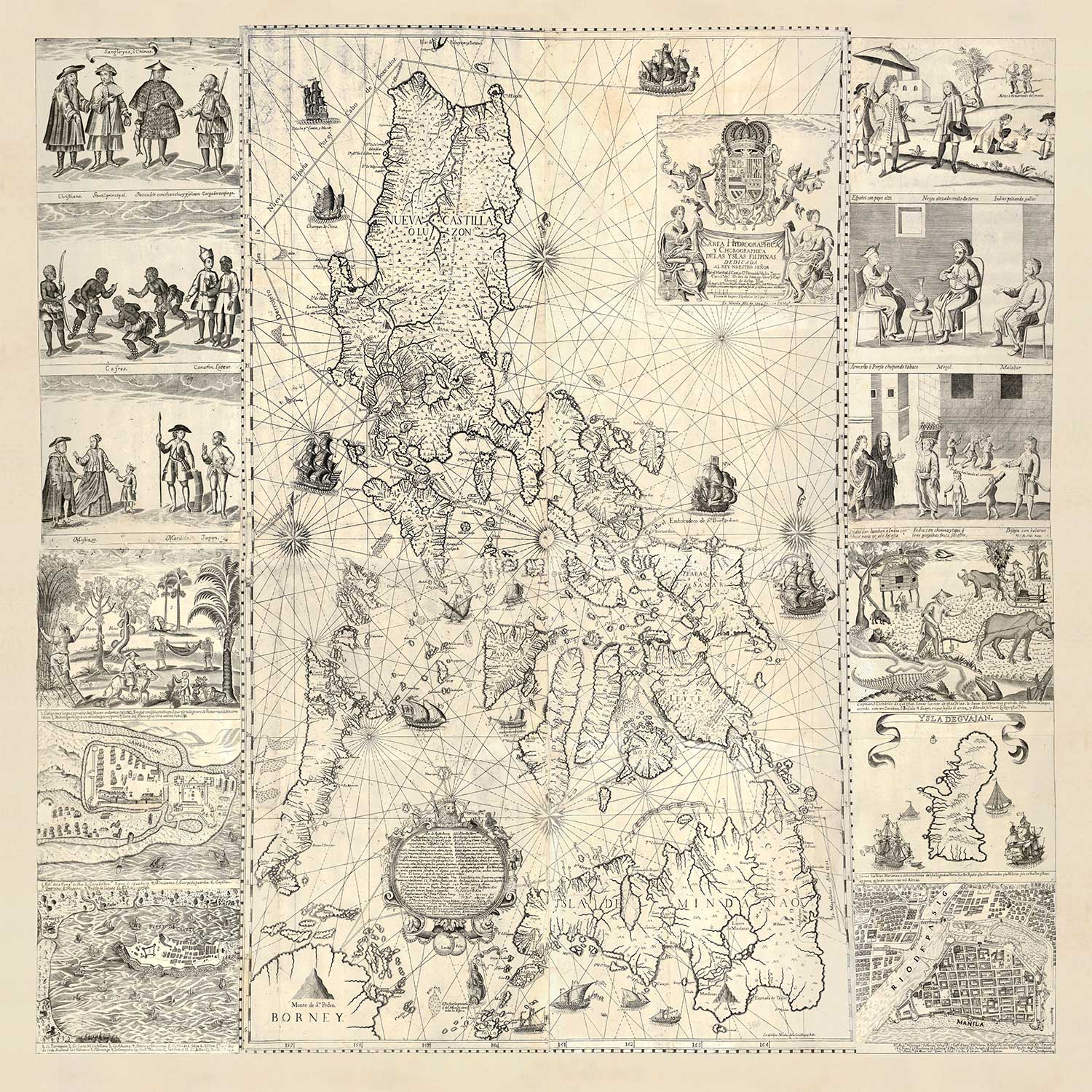 Old Map of the Philippines in 1734 by Pedro Murillo Velarde: Luzon, Manila, Mindanao, Palawan, Bisayas, Sulu Archipelago