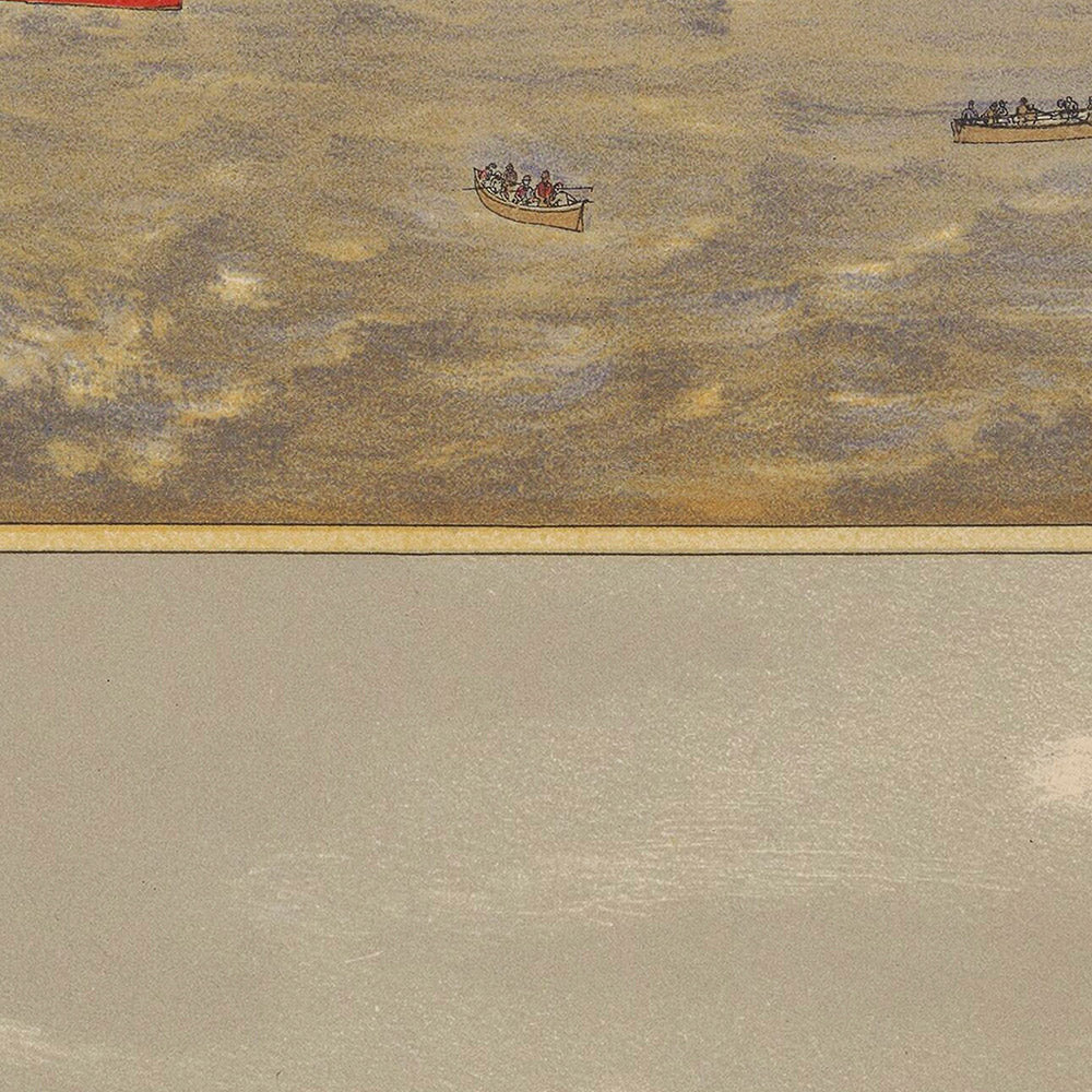 About the artist: credited “Lith. F. Appel,” this work comes from a Parisian lithographic atelier active in the late nineteenth century, when chromolithography was the premier medium for commercial posters. Studios like Appel’s worked closely with shipping companies, railway lines, and department stores to produce crisp, technically faithful images that reproduced beautifully at large scale. Though less famous than marquee poster artists of the era, such lithographers were prized for meticulous draughtsmanship—especially in rendering rigging, hull lines, and maritime perspective.