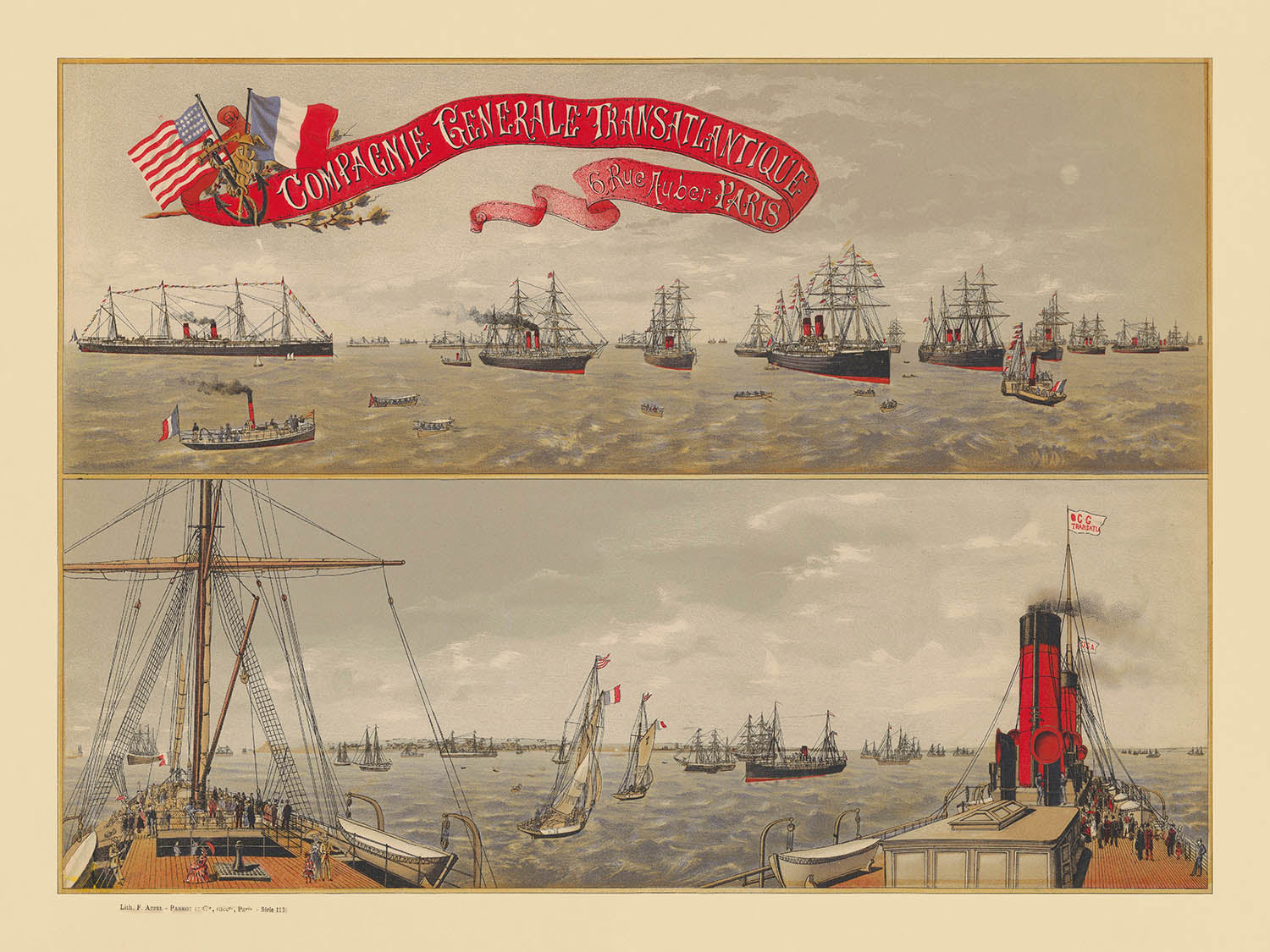 Paris Travel Poster: Compagnie Générale Transatlantique, 6 Rue Auber by F. Appel, 1890