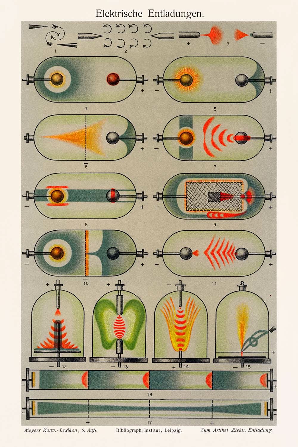 Vintage Physics & Science Poster: Electrical Discharges by Joseph Meyer, 1909