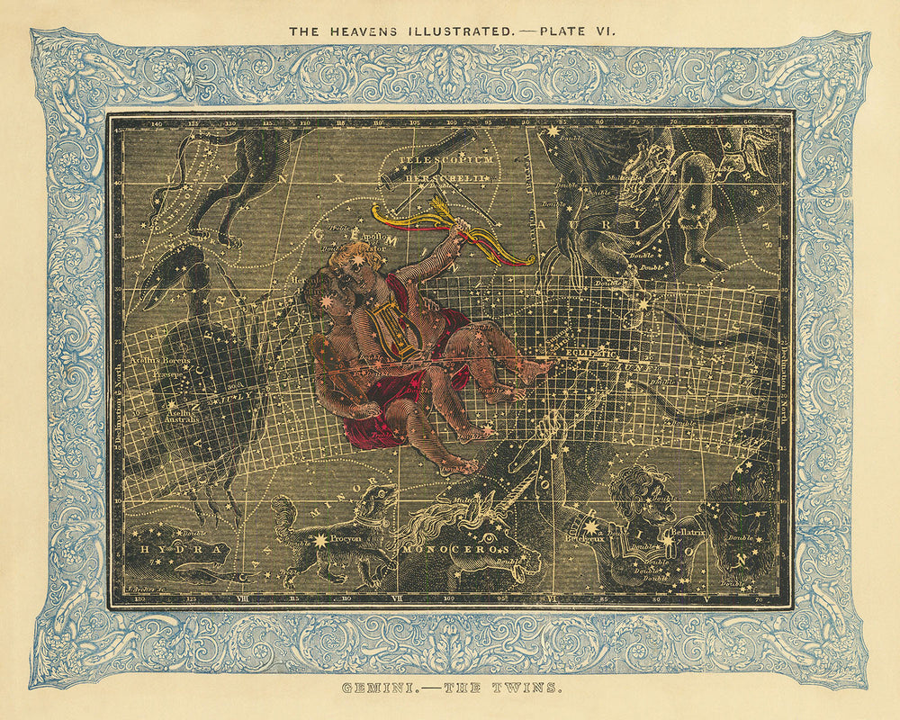 This fine art print of Gemini, The Twins, would make a perfect gift for various occasions such as Christmas, Father’s Day, Mother's Day, housewarming parties, or as a thoughtful farewell present for a colleague. It is an ideal choice for anyone who appreciates fine art, has an interest in astronomy, or enjoys the timeless beauty of historical maps .