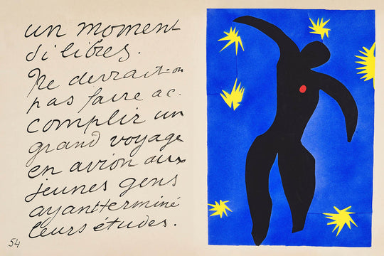 Henri Matisse's "Icarus" is a magnificent artwork, created during the artist's celebrated cut-out period in 1947. Renowned for pioneering the Fauvist movement, Matisse was at the forefront of modern art, with “Icarus” being a vivid expression of his innovative style. Originally part of his iconic book "Jazz," this piece epitomizes the primal energy inherent in his revolutionary confrontations with color and form.