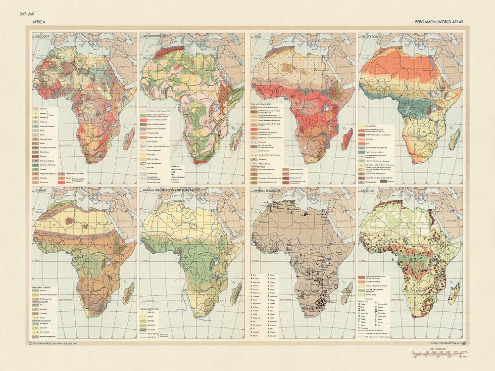 - Geology and Geomorphology: The map provides detailed infographics on Africa's geology and geomorphology, offering insights into the continent's diverse physical landscape.