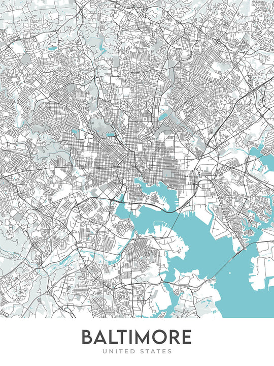 This map of Baltimore is a celebration of the city's vibrant energy and diverse neighborhoods. The map focuses on the city's most iconic landmarks and neighborhoods, including the Inner Harbor, Oriole Park at Camden Yards, and the University of Maryland, Baltimore. The map also features unique cartography and modern design, making it a stylish addition to any home or office.