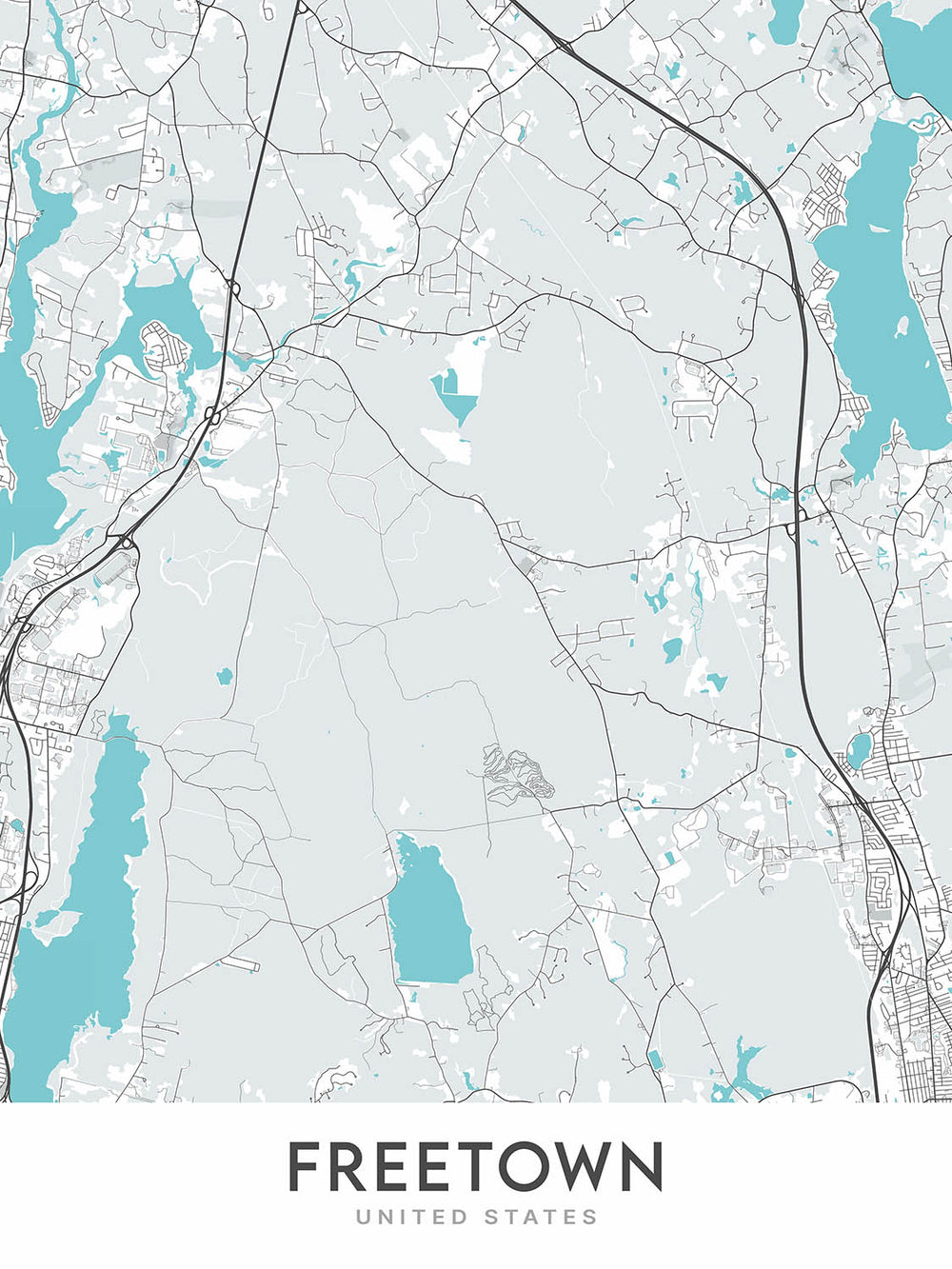 This map is a must-have for anyone who loves Freetown, Massachusetts. It is a beautiful and informative work of art that will add a touch of sophistication to any home or office.