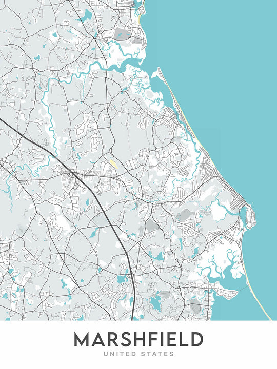 Modern City Map of Marshfield, MA: Brant Rock Beach, Daniel Webster Estate, Green Harbor Beach, Rexhame Beach, South River