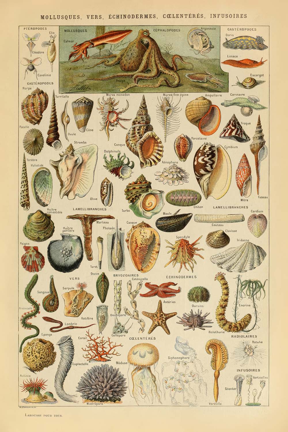 Molluscs, Worms, Echinodermes and Jellyfish by Adolphe Millot 1890