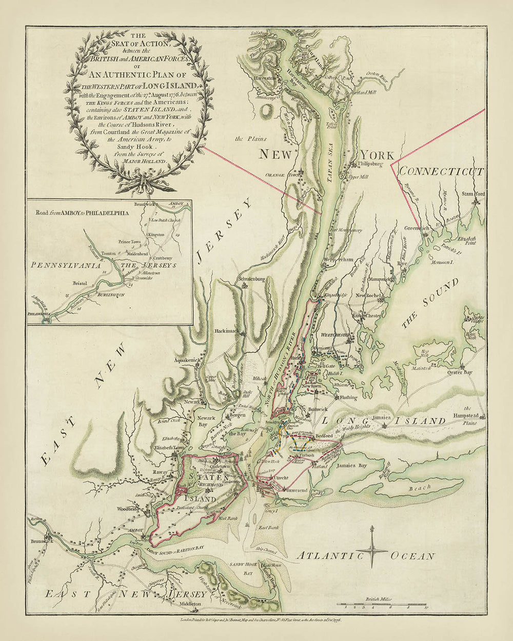 - Name of the map: The Seat of Action between the British and American Forces. Or an Authentic Plan of the Western Part of Long Island, With the engagement of the 27th August 1776 Between the Kings Forces and the Americans . . . from Surveys of Major Holland.