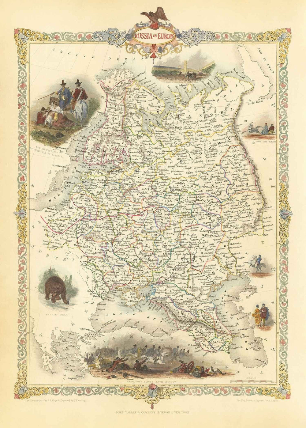 Engraved by John Rapkin and published by J. Tallis & Co in 1851, this is one of the finest and most detailed historic maps of Russia - or at least, the part of Russia that is on the European continent. When this map was made, Nicholas I was the emperor of the Russian Empire.