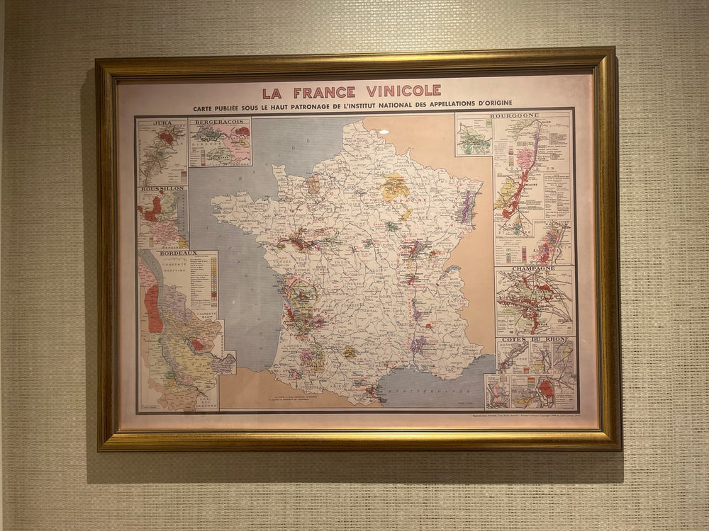 The locations on this map include: Champagne, Bourgogne, Cotes Du Rhone, Bordeaux, Roussillon, Jura, Bergeracois, Paris, Lille, Marseille, Nice and Monaco.