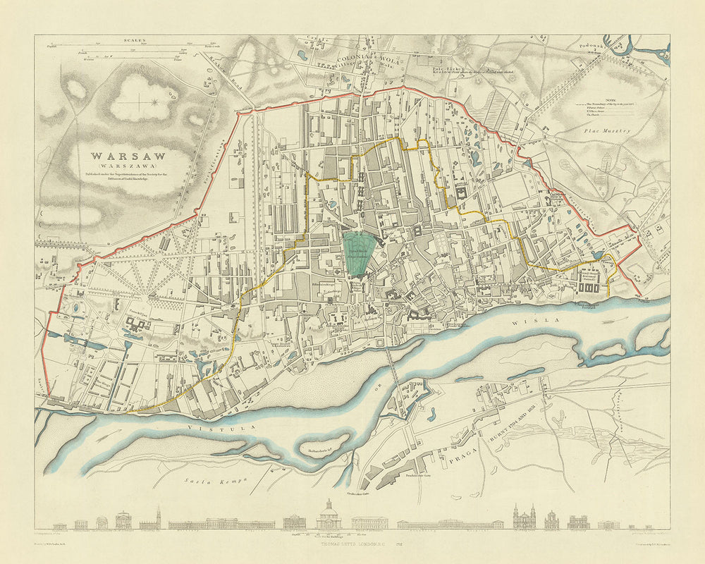 - Shows Warsaw before the extensive late 19th-century expansion and the destruction of World War II