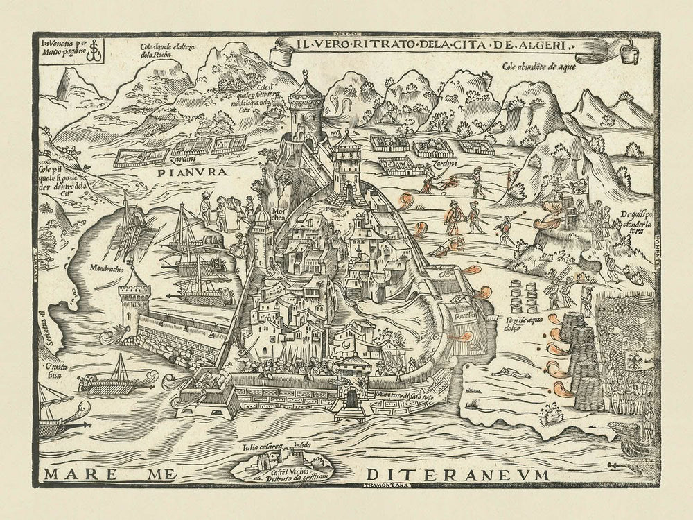 - Historical themes: The map depicts the 1541 Siege of Algiers, an unsuccessful attempt by Charles V of the Holy Roman Empire to capture Algiers from the Ottoman Empire.