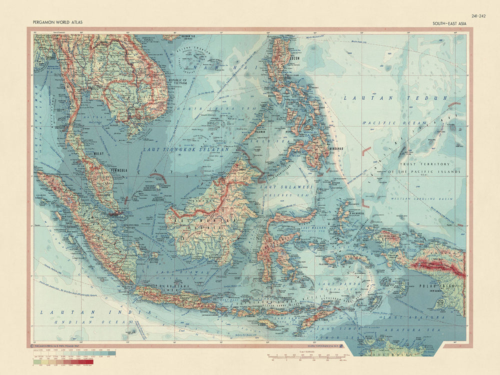 Old Map of Southeast Asia, 1967: Asiatic or Malay Archipelago - Indonesia, Malaysia, Philippines, Brunei