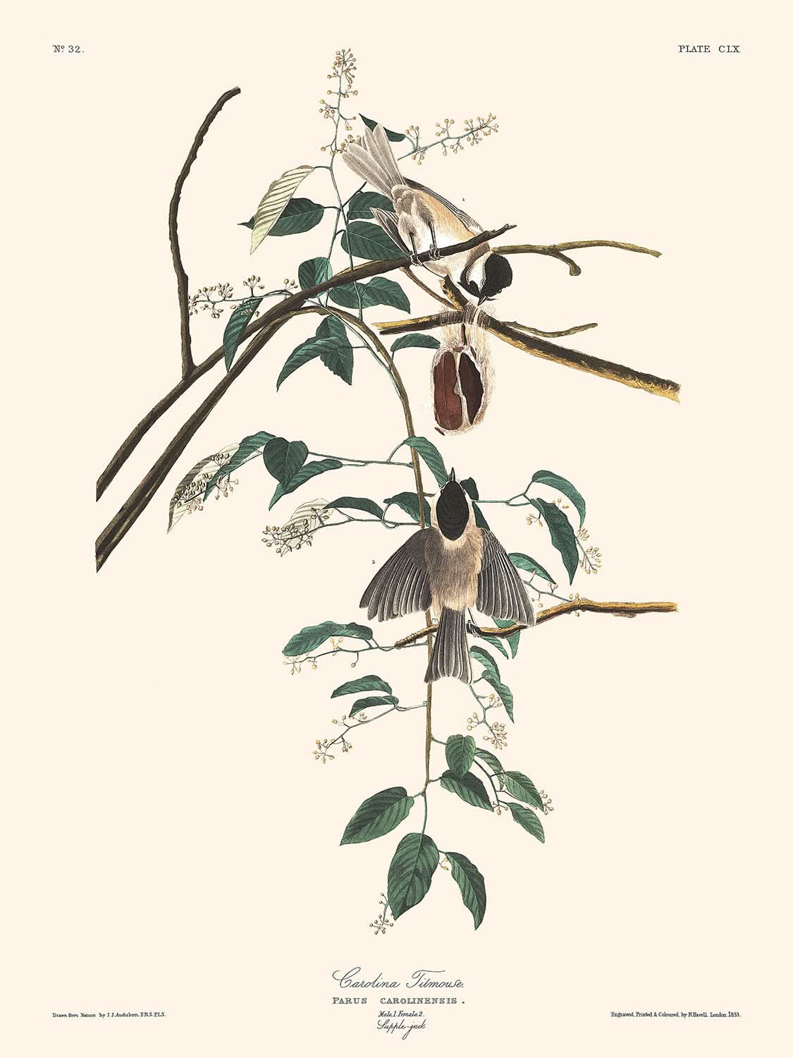 The Carolina Titmouse is an intriguing bird, previously misidentified with its northern relatives. Through Audubon’s remarkable field research and collaboration with like-minded naturalists, the distinctiveness of this southern species was unveiled. This not only highlights the riveting tale of discovery woven into the artwork but also adds historical value and intrigue.