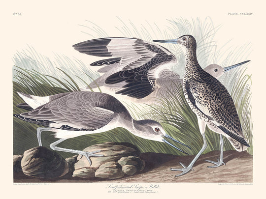 John James Audubon's "Semipalmated Snipe, or Willet (Plate 274)" is an exquisite representation of this distinctive bird as part of the famed series "Birds of America," first published in 1827. Audubon, a prominent figure in ornithology and naturalism, is renowned for his mesmerizing, lifelike bird illustrations, with this piece capturing the nuanced behavior and habitats of the Semipalmated Snipe, also known as the Willet.