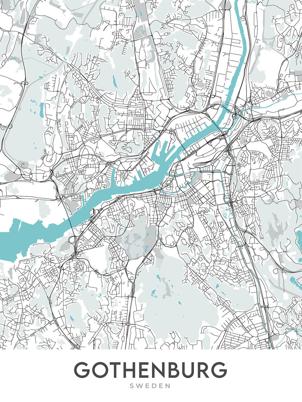 This map is a must-have for anyone who loves Gothenburg, or for anyone who appreciates beautiful maps. It is a unique and stylish piece of art that will add a touch of sophistication to any home or office.