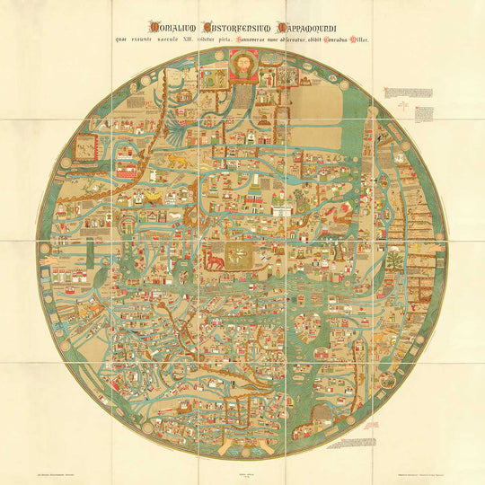 Dive into the intricate details of the 13th century world with this meticulously crafted map, focusing on the Mediterranean region and beyond. This reproduction of the Ebstorf Mappa Mundi offers a unique glimpse into the perceptions and geographical knowledge of the Middle Ages, brought to life by an anonymous mapmaker. The map, originally published in the 13th century, is a testament to the artistry and ambition of medieval cartographers, providing an engaging and educational piece for any history or map enthusiast.