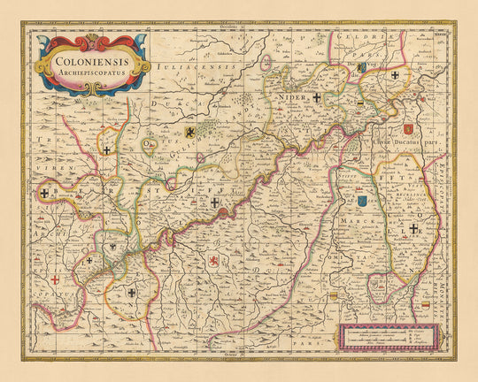 Beyond its aesthetic appeal, the 'Coloniensis Archiepiscopatus' serves as a window into the past. It offers a glimpse into the political and geographical landscape of the time, revealing how the region has evolved over the centuries. Whether you're a history enthusiast, a lover of maps, or simply someone who appreciates fine art, this map is sure to captivate your interest.