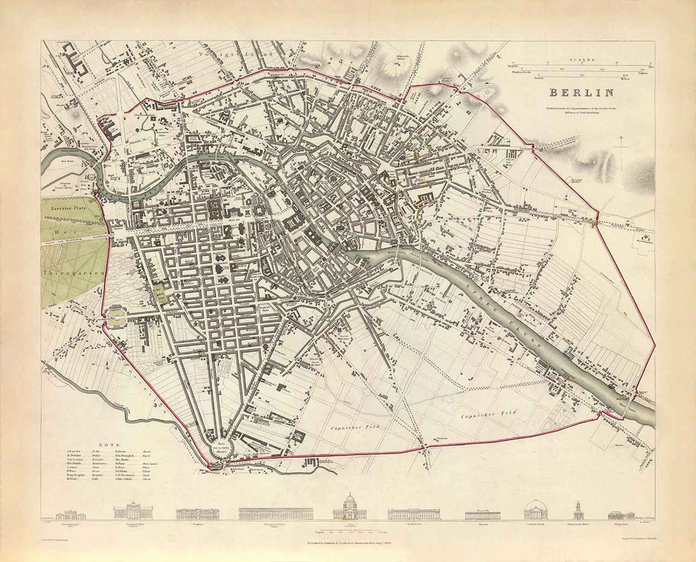 The map shows the city of Berlin as it was almost 200 years ago when Berlin was the capital of the province of Brandenburg.