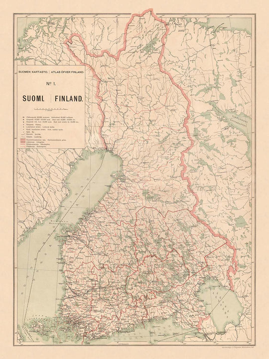 Beyond its geographical detail, this map is a piece of art, capturing the spirit of an era marked by exploration and discovery. It invites you to explore the historical significance of Finland at the turn of the century, offering insights into the cultural and economic forces that shaped the nation. Whether you are a collector, historian, or enthusiast, this map is a captivating addition to any collection, embodying the elegance and precision of 19th-century cartography.