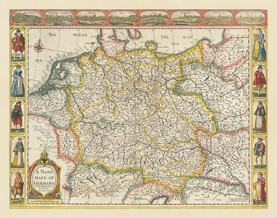 Old Map of Germany by John Speed, 1627: Holy Roman Empire, German Empire
