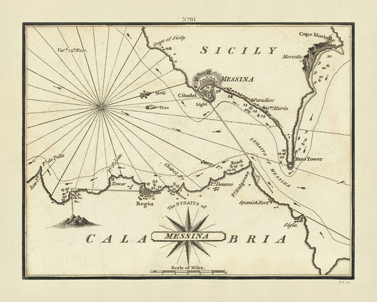 - The map depicts the Straits of Messina, a crucial maritime passage separating Sicily from mainland Italy.