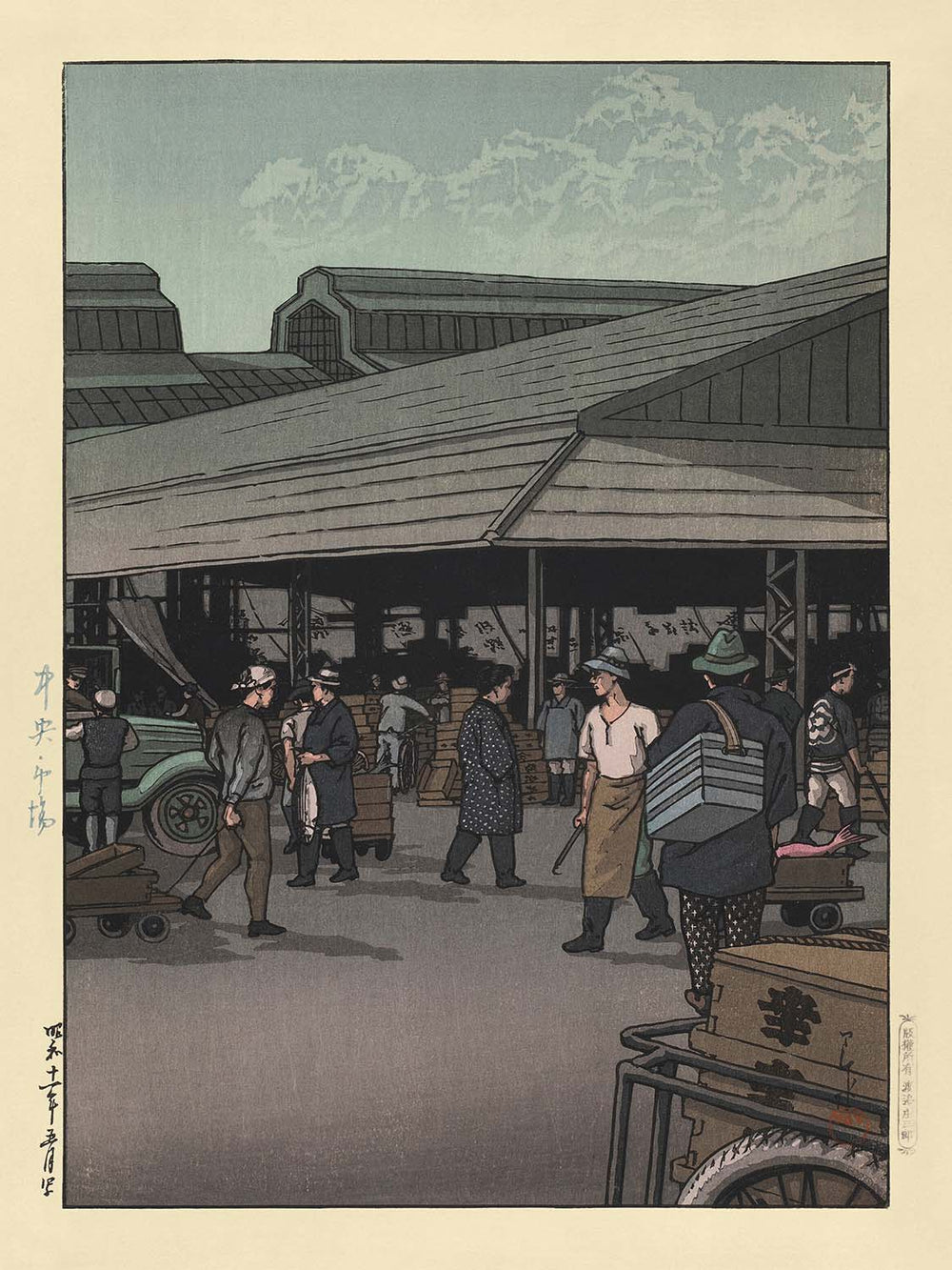 The Central Market, Tokyo by Hasui Kawase, 1935