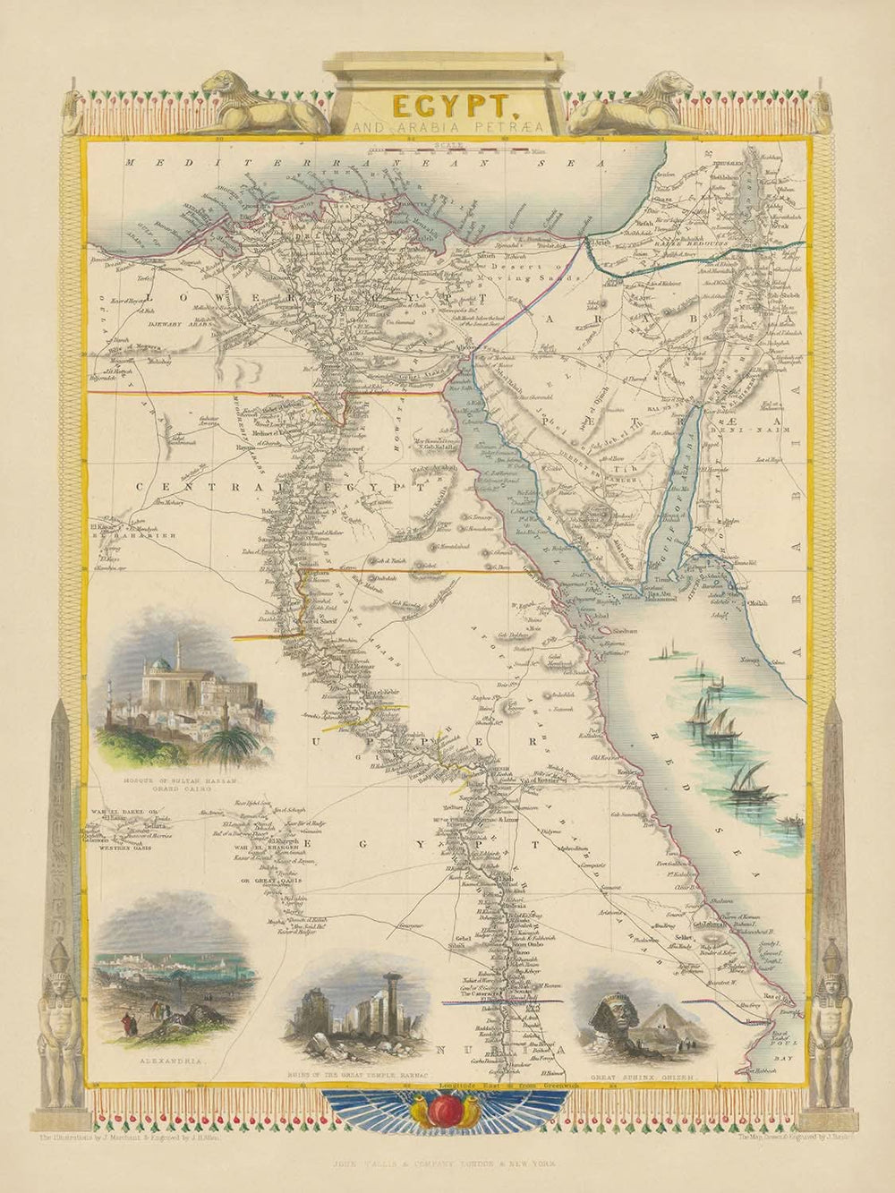 John Tallis's map is more than a geographical representation; it is a window into the past, capturing the essence of a region rich in history and culture. Its blend of detailed cartography and artistic embellishment makes it a prized possession for collectors and enthusiasts alike, offering a timeless journey through the landscapes and legacies of Egypt and Arabia Petraea.