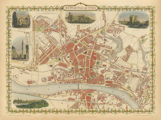 Discover the enchanting allure of "Newcastle on Tyne," an exquisite city map crafted by the renowned John Tallis in 1851. This map captures the essence of Newcastle during the mid-19th century, a time when the city was a burgeoning hub of industry and innovation. Tallis, celebrated as one of the last great decorative mapmakers, imbues this piece with his signature style, featuring intricate vignettes that bring the city’s vibrant streets and architecture to life. Each detail tells a story of Newcastle's transformation during the Industrial Revolution, making it a captivating artifact for any history enthusiast.