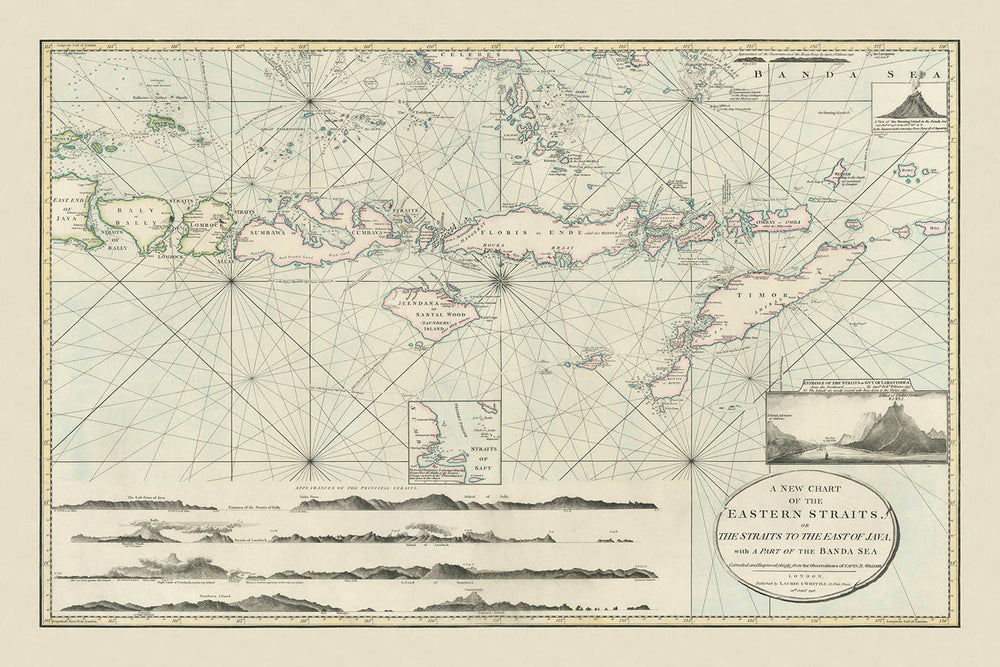 Old Nautical Chart of Bali, Lombok, Flores, Sumba and Timor by Laurie & Whittle, 1798: Java, Banda Sea, Expeditions
