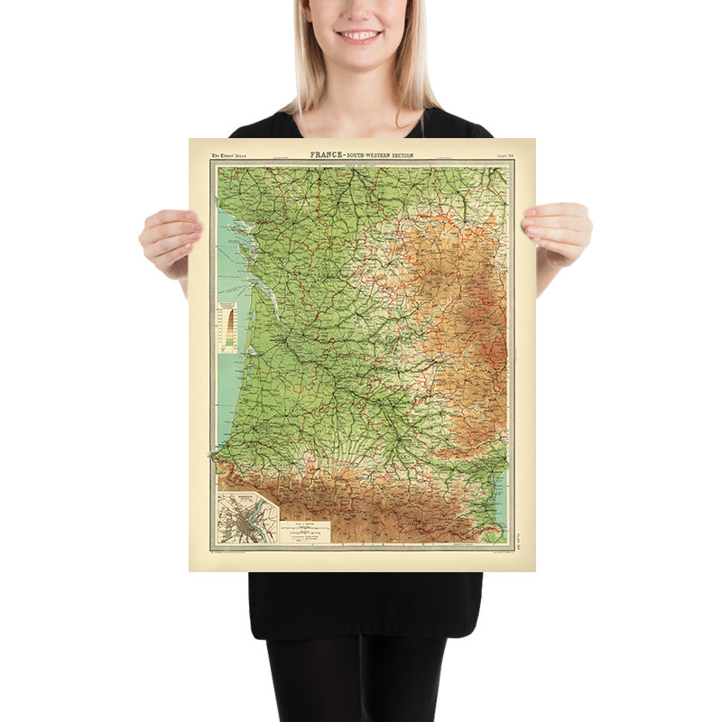 - Insets: Smaller map inset of Bordeaux showing urban planning and significant infrastructure.