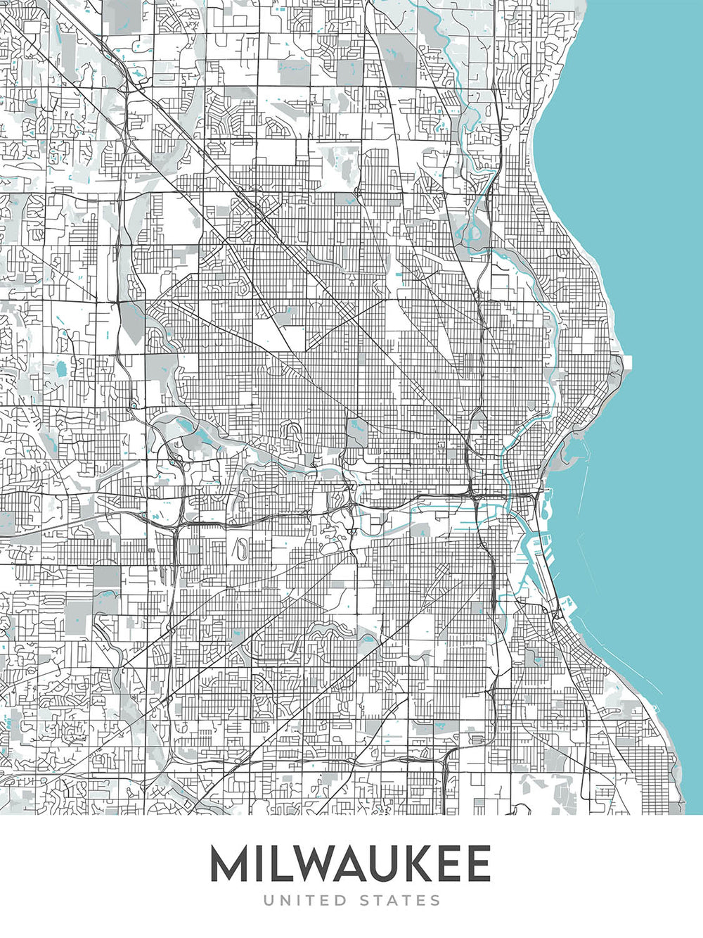 This map of Milwaukee is a must-have for anyone who loves the city or is interested in cartography and design. It is a beautiful and informative piece of art that will add a touch of sophistication to any home or office.