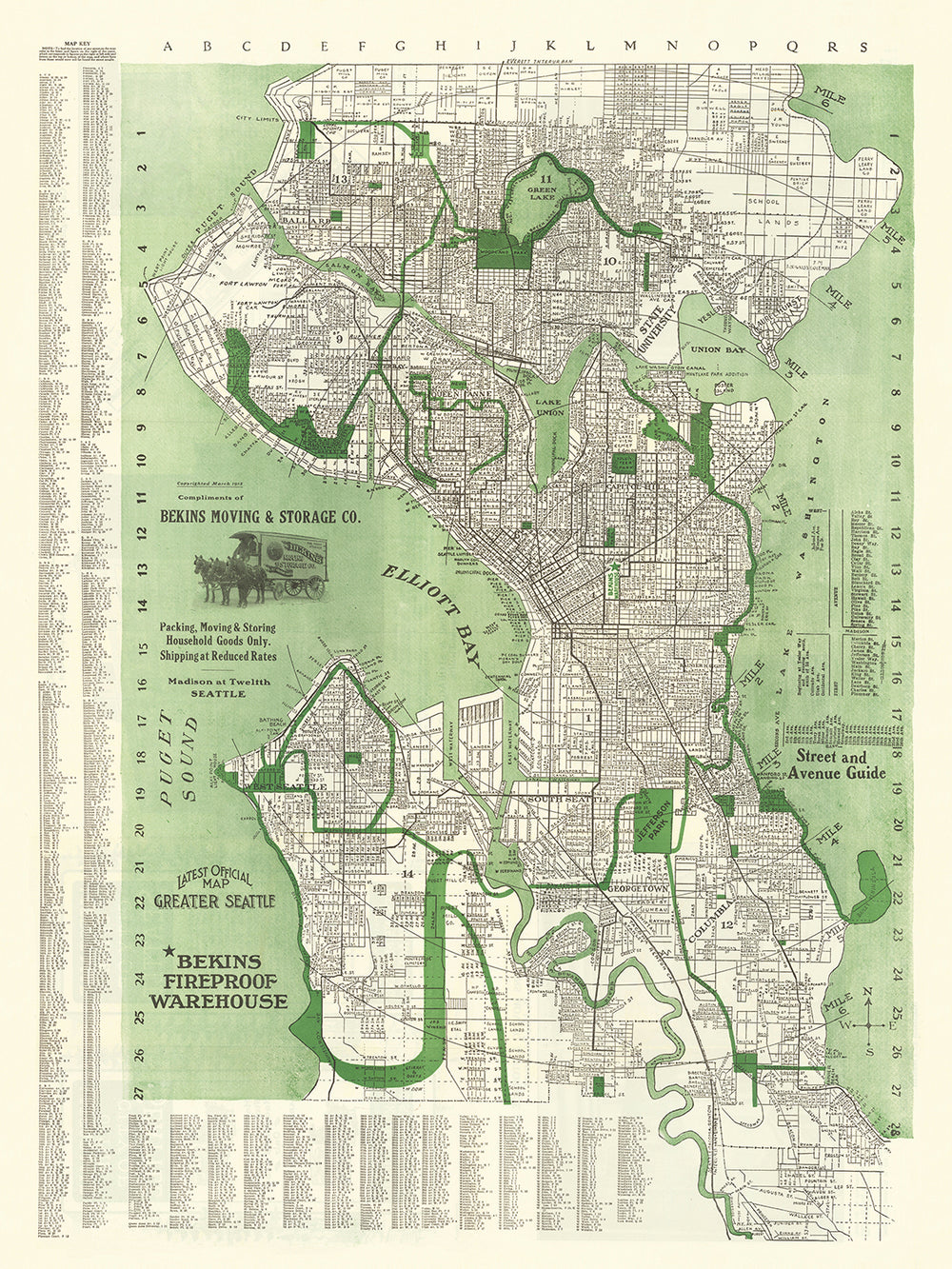 Another interesting aspect of the map is its depiction of the city's natural features. The map shows the location of several lakes, including Green Lake and Lake Union, as well as the Duwamish River. These natural features have played an important role in the city's development, providing a source of water, transportation, and recreation. The map also shows the location of several parks, including Volunteer Park and Seward Park, which have been important green spaces for the city's residents for generations.