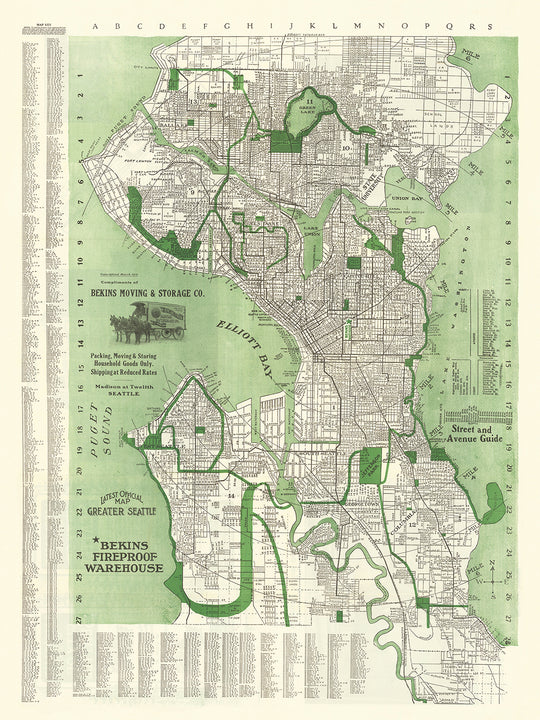 Old Map of Seattle, 1913: Pike Place Market, University of Washington, Green Lake, Lake Washington, Smith Tower