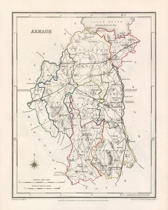 Owning the Old Map of Armagh by Samuel Lewis, 1844, allows you to delve into the county's captivating history, explore its notable settlements, and appreciate the natural beauty that has shaped the region.