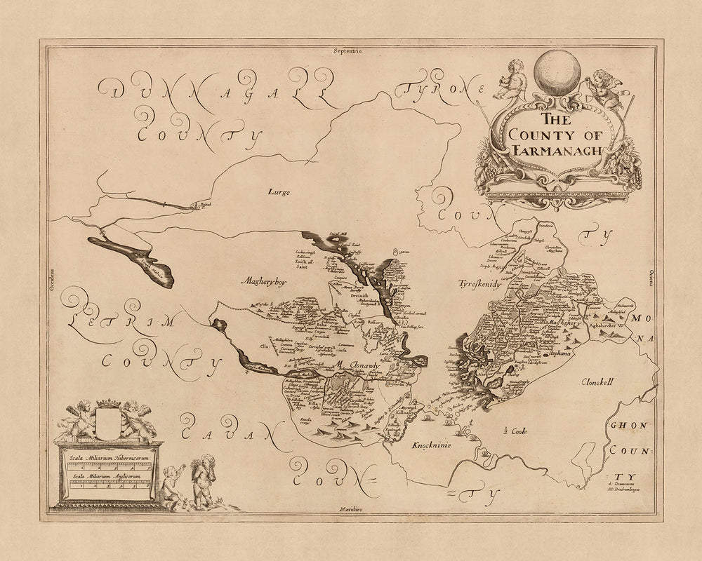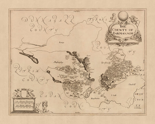 This map of County Fermanagh, published in 1685 by Sir William Petty, is a detailed political and physical map that provides a wealth of information about the county during the late 17th century. The map is based on the Down Survey of Ireland, which was the first ever detailed land survey on a national scale anywhere in the world. Petty's map is a reduced scale version of the original Down Survey, but it still manages to capture an impressive amount of detail.