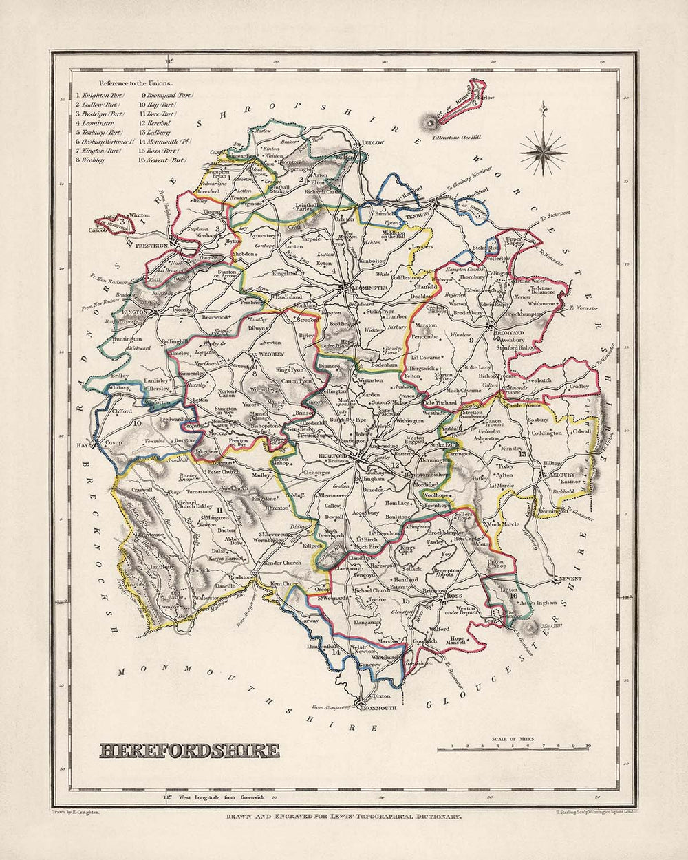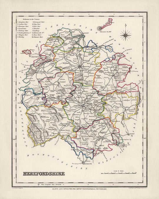 Owning this Old Map of Herefordshire by Samuel Lewis allows you to immerse yourself in the county's rich history, explore its towns and cities, and appreciate the beauty of its landscapes. It is a remarkable piece of cartographic art that captures the essence of Herefordshire in 1844, making it a truly captivating addition to any collection.