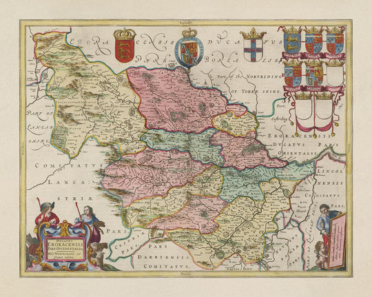 Old Map of West Yorkshire, 1665 by Joan Blaeu: York, Bradford, Sheffield, Leeds, Huddersfield, Halifax, Wakefield