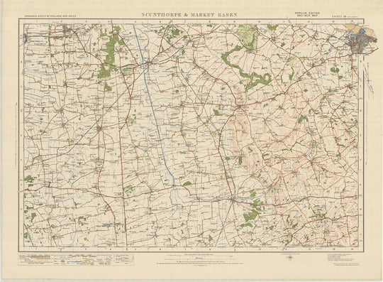 The "Sheet 39 - Scunthorpe & Market Rasen" map from Ordnance Survey's One-inch "Popular" edition, England and Wales, published in 1925, is a remarkable piece of cartographic history. This meticulously crafted map showcases the towns, cities, and fascinating features of Scunthorpe & Market Rasen, as well as several other notable locations in the surrounding area. It provides a captivating snapshot of England's past, offering a glimpse into a bygone era.