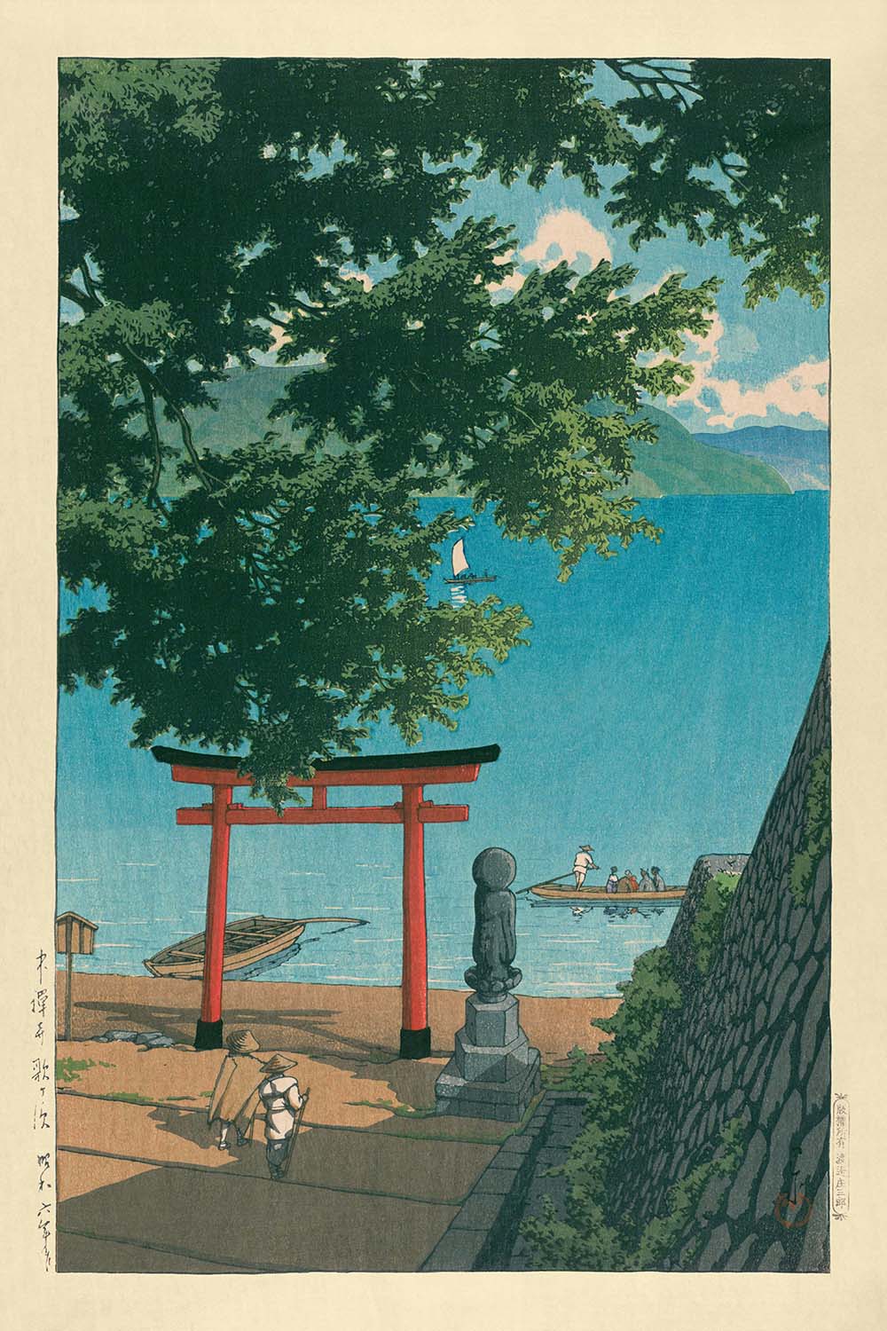 Chuzenji Temple and Beach at Utagahama by Hasui Kawase, 1935